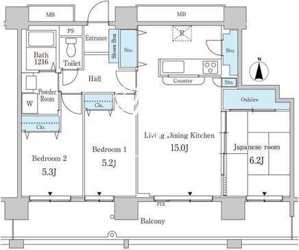 平米数 | 72.31m2 | 部屋詳細 | LDK15帖/洋室5.3帖/洋室5.2帖/和室6.2帖 |