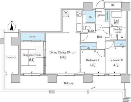 | 平米数 | 69.95m2 | 部屋詳細 | LDK14帖/洋室4.6帖/洋室4.6帖/和室6.1帖 |