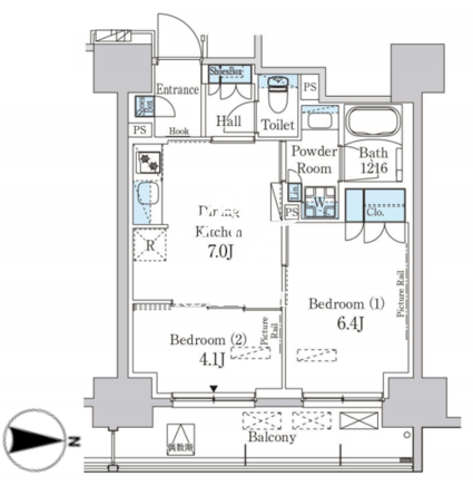 | 平米数 | 41.18m2 | 部屋詳細 | DK7帖/洋室6.4帖/洋室4.1帖 |