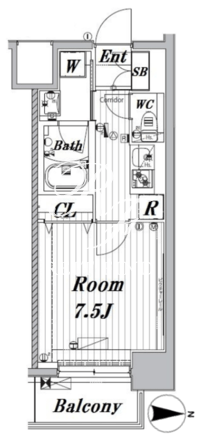 平米数 | 26.40m2 | 部屋詳細 | 洋室7.5帖/K2帖 |