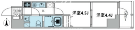 平米数 | 27.57m2 | 部屋詳細 | 洋室4.5帖/洋室4.4帖/K2帖 |