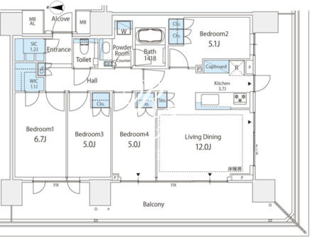 所在階/向き | 13階/西 | 間取り | 4LDK+SIC+WIC |