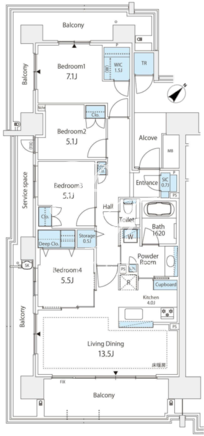 所在階/向き | 18階/南東 | 間取り | 4LDK+SIC+WIC |