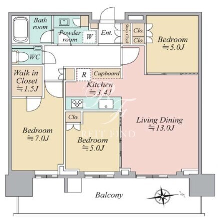 所在階/向き | 45階/東 | 間取り | 3LDK+WIC |