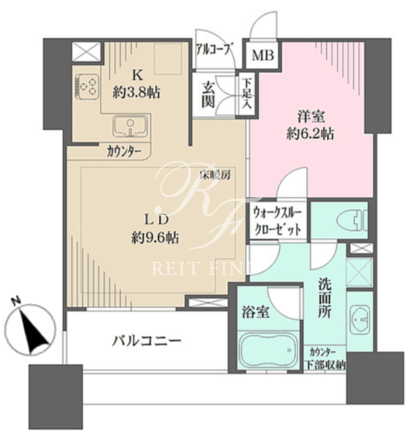 所在階/向き | 18階/南西 | 間取り | 1LDK+WIC |