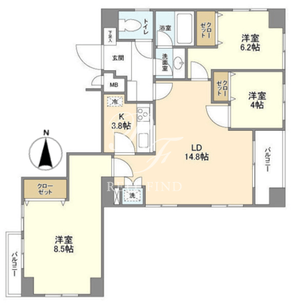 平米数 | 82.56m2 | 部屋詳細 | LDK18.8帖/洋室8.5帖/洋室6.2帖/洋室4帖 |