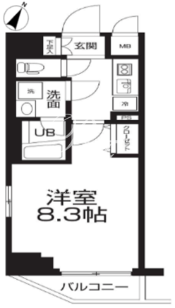 平米数 | 25.77m2 | 部屋詳細 | 洋室8.3帖/K2帖 |