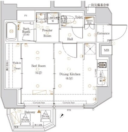平米数 | 33.57m2 | 部屋詳細 | DK6.5帖/洋室4.1帖 |