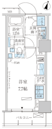 平米数 | 24.63m2 | 部屋詳細 | 洋室7.7帖 |