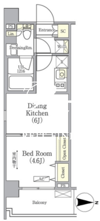 所在階/向き | 6階/東 | 間取り | 1DK |