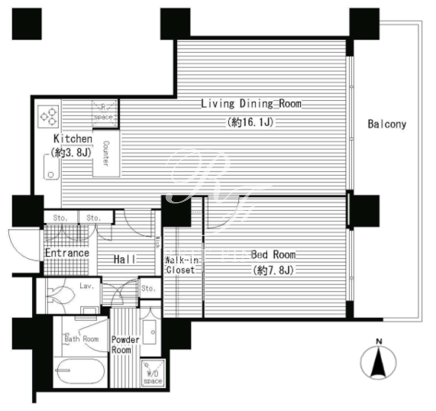 所在階/向き | 20階/東 | 間取り | 1LDK+WIC |
