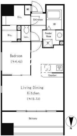 | 平米数 | 44.61m2 | 部屋詳細 | LDK13.7帖/洋室4.4帖 |