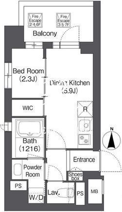 | 平米数 | 25.70m2 | 部屋詳細 | DK5.9帖/洋室2.3帖 |