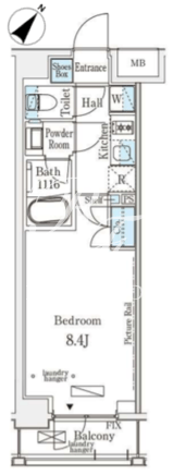 平米数 | 25.29m2 | 部屋詳細 | 洋室8.4帖/K2帖 |