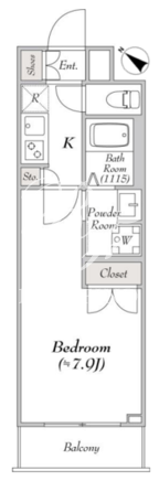 平米数 | 25.03m2 | 部屋詳細 | 洋室7.9帖/K2帖 |