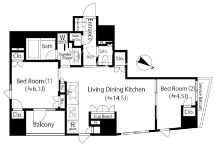 平米数 | 62.00m2 | 部屋詳細 | LDK14.5帖/洋室6.1帖/洋室4.5帖 |