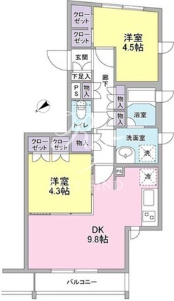 平米数 | 48.47m2 | 部屋詳細 | DK9.8帖/洋室4.5帖/洋室4.3帖 |