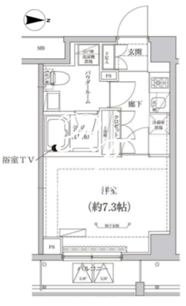 平米数 | 25.15m2 | 部屋詳細 | 洋室7.3帖/K2帖 |