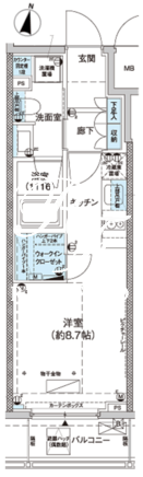 平米数 | 25.01m2 | 部屋詳細 | 洋室8.7帖 |