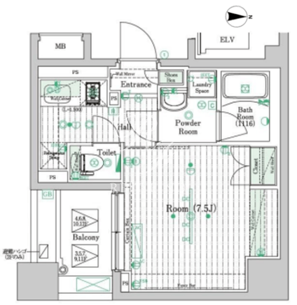平米数 | 25.64m2 | 部屋詳細 | 洋室7.5帖/K2帖 |