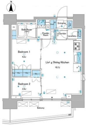 平米数 | 40.31m2 | 部屋詳細 | LDK10.7帖/洋室4.2帖/洋室2.9帖 |