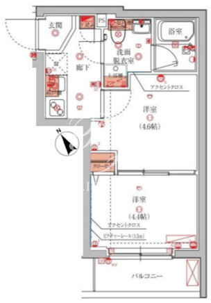 平米数 | 25.71m2 | 部屋詳細 | 洋室4.6帖/洋室4.4帖/K2帖 |