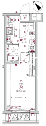 平米数 | 26.10m2 | 部屋詳細 | 洋室8.1帖/K2帖 |