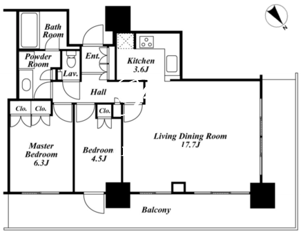 所在階/向き | 17階/北 | 間取り | 2LDK |