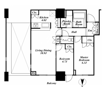 所在階/向き | 10階/北 | 間取り | 2LDK |