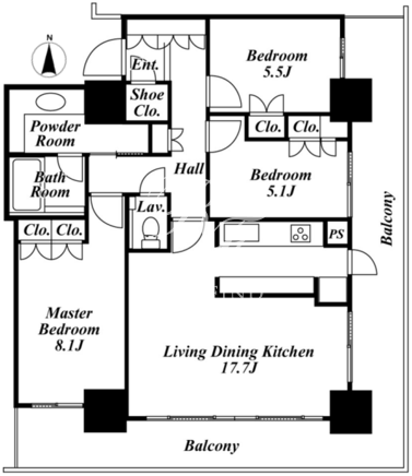 平米数 | 84.63m2 | 部屋詳細 | LDK17.7帖/洋室5.5帖/洋室5.1帖/洋室8.7帖 |