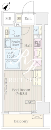 平米数 | 24.69m2 | 部屋詳細 | 洋室6.3帖/K2帖 |