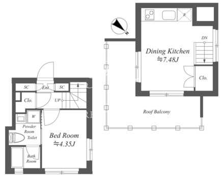 平米数 | 31.66m2 | 部屋詳細 | DK7.48帖/洋室4.35帖 |