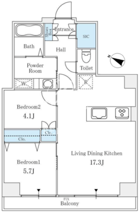 平米数 | 65.10m2 | 部屋詳細 | LDK17.3帖/洋室5.7帖/洋室4.1帖 |