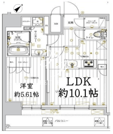 平米数 | 40.61m2 | 部屋詳細 | LDK10.1帖/洋室5.61帖 |