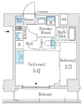 平米数 | 25.65m2 | 部屋詳細 | 洋室5.4帖/洋室2.7帖/K2帖 |