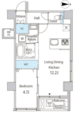 所在階/向き | 4階/東 | 間取り | 1LDK+WIC+SIC |