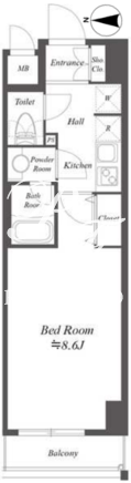 平米数 | 25.99m2 | 部屋詳細 | 洋室8.6帖/K2帖 |