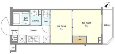 平米数 | 25.78m2 | 部屋詳細 | 洋室4.3帖/洋室4.1帖/K2帖 |