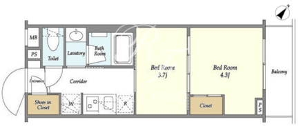| 平米数 | 25.46m2 | 部屋詳細 | 洋室4.3帖/洋室3.7帖/K2帖 |