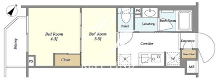 平米数 | 25.51m2 | 部屋詳細 | 洋室4.3帖/洋室3.5帖/K2帖 |
