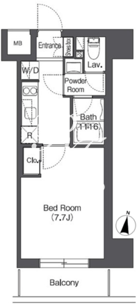 平米数 | 25.67m2 | 部屋詳細 | 洋室7.7帖/K2帖 |