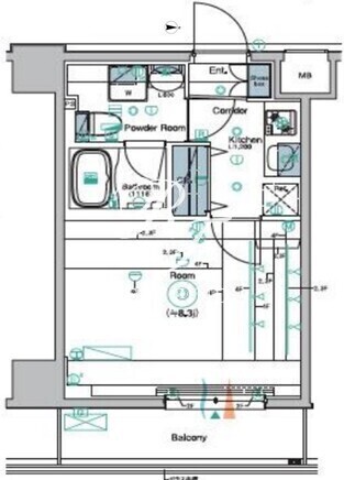 平米数 | 25.43m2 | 部屋詳細 | 洋室8.3帖/K2帖 |