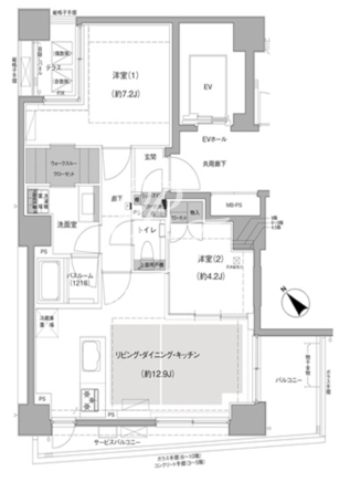 平米数 | 56.67m2 | 部屋詳細 | LDK12.9帖/洋室7.2帖/洋室4.2帖 |