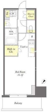 所在階/向き | 2階/北西 | 間取り | 1R+WIC+SIC |