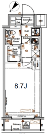 所在階/向き | 8階/北西 | 間取り | 1K |