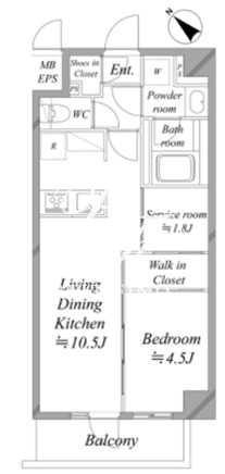 平米数 | 40.06m2 | 部屋詳細 | LDK10.5帖/洋室4.5帖/サービスルーム1.8帖 |