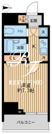 平米数 | 23.26m2 | 部屋詳細 | 洋室7.3帖/K2帖 |