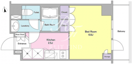 平米数 | 25.27m2 | 部屋詳細 | 洋室6.8帖/K2.5帖 |