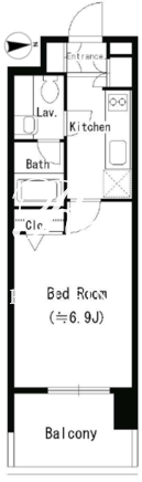 平米数 | 22.24m2 | 部屋詳細 | 洋室6.9帖/K2帖 |