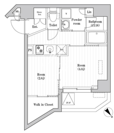 所在階/向き | 4階/北東 | 間取り | 2K+WIC |